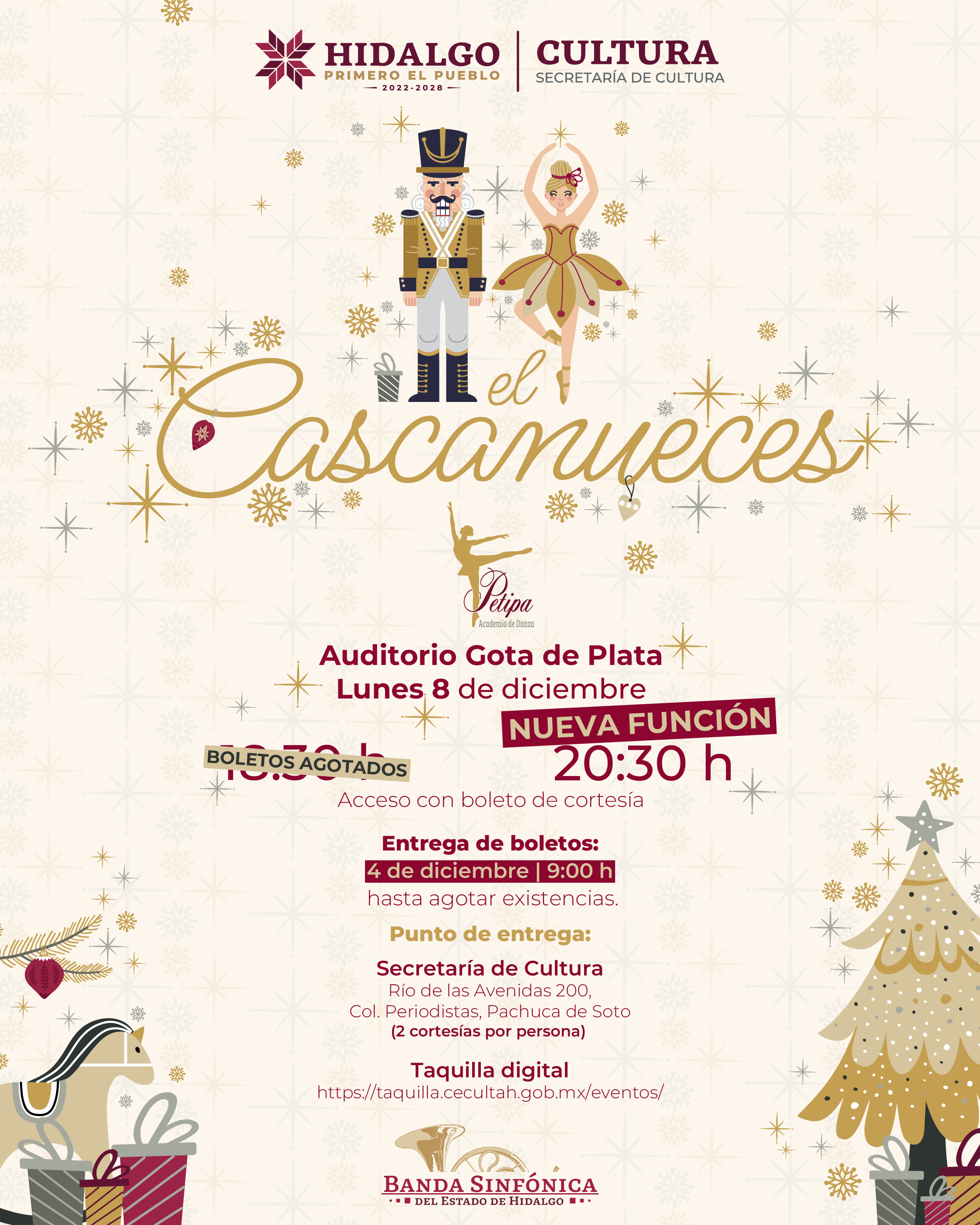 Si solicitaste boletos digitales para el Concierto del Cascanueces del lunes 8 de diciembre a las 20:30 horas, por favor, revisa en la bandeja de entrada de tu correo electrónico (o en spam o no deseados), un mensaje que te enviamos desde siec.sistemas@hidalgo.gob.mx con indicaciones para la descarga de los mismos. Es muy importante que realices esto para asegurar una grata experiencia. Revisa tu correo electrónico